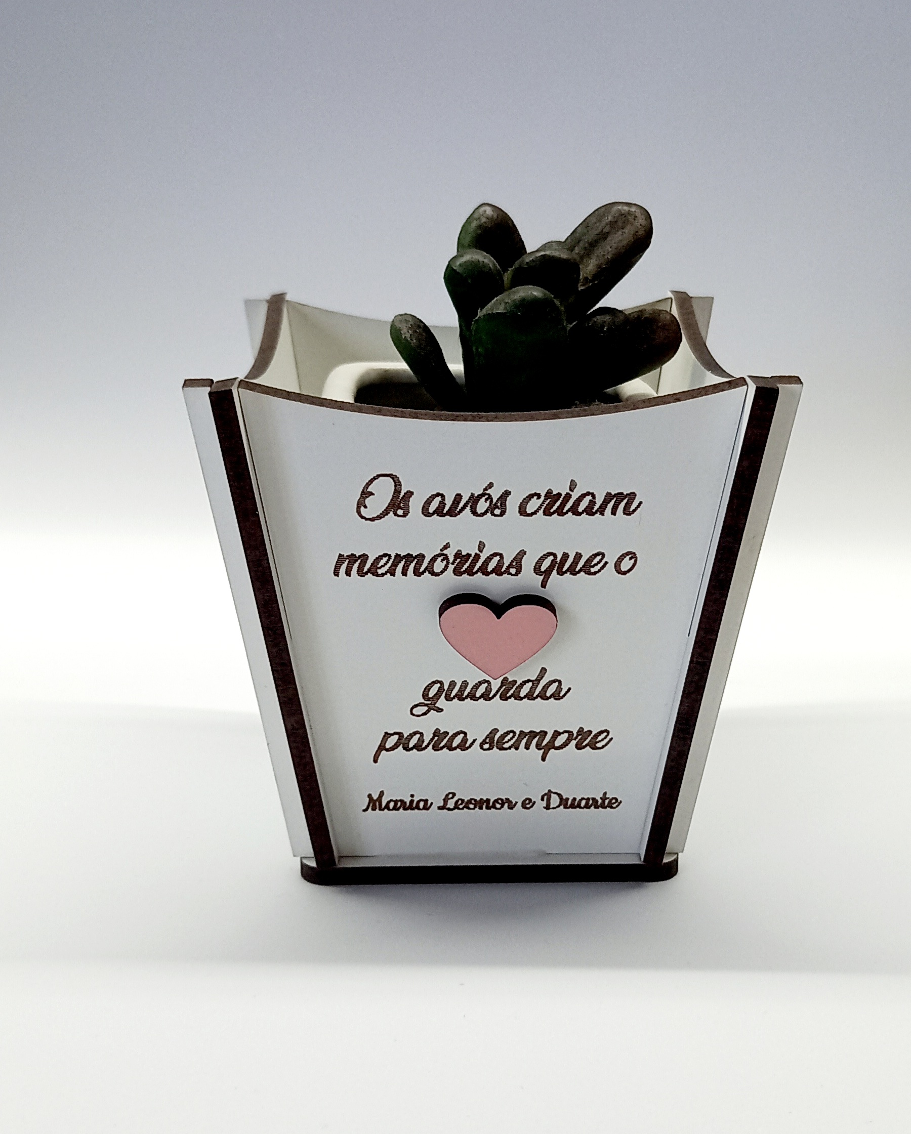 Vaso em mdf com cerca de 7cmx7cm, planta não incluída.